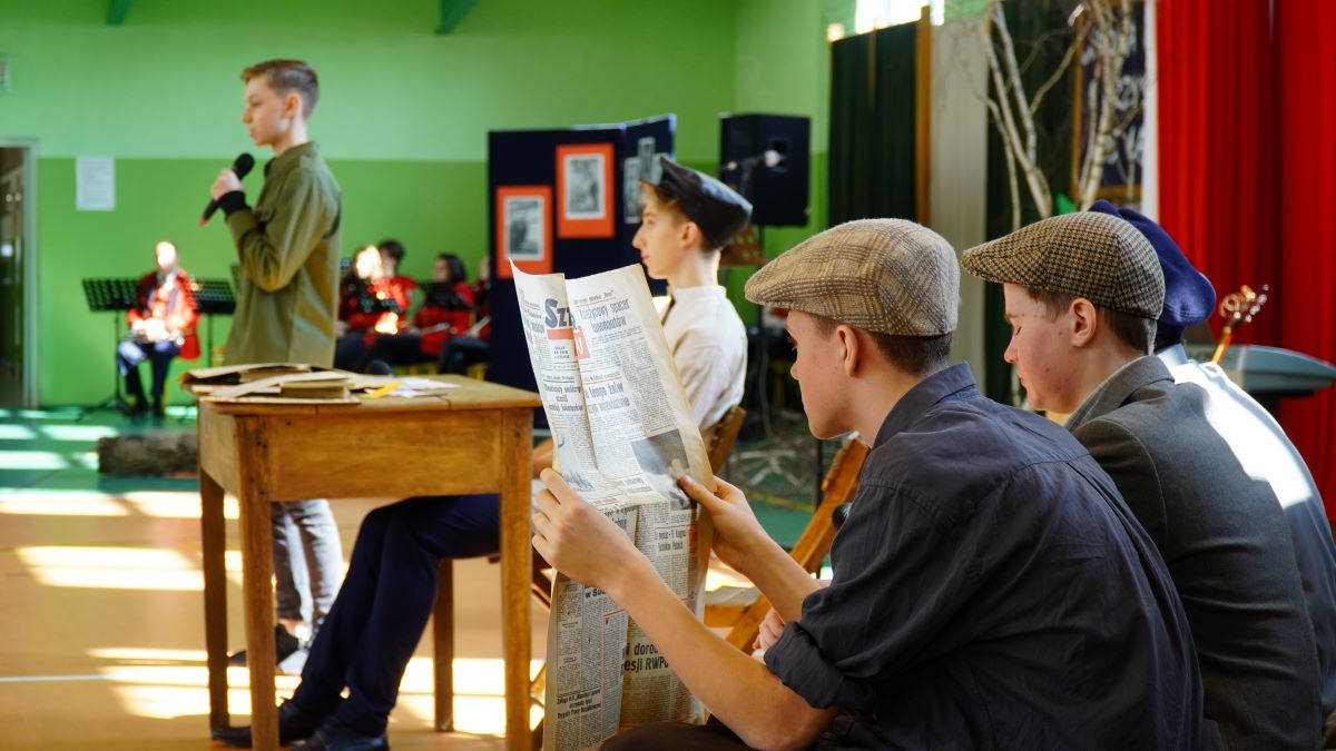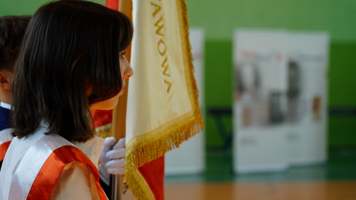 Uczniowie szkoły przygotowali część artystyczną o historii Pierwszej Trawnickiej Drużyny Harcerskiej.