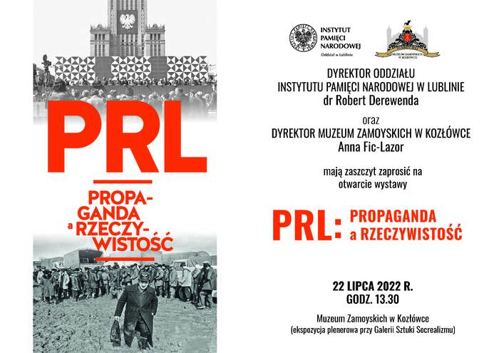 Wystawa "PRL: propaganda a rzeczywistość" opowiada o różnicach w obrazie przedstawianym przez propagandę, a rzeczywistością PRL. Obok fotografii z akcji propagandowych, pochodów lub instalacji funkcjonujących w przestrzeni publicznej, znajdują się materiały wskazujące na kłamliwy charakter oficjalnego przekazu władz. Całość uzupełniają zwięzłe opisy, pozwalające zapoznać się z tematyką eksponowaną najczęściej przez rządzących oraz odsłaniające prawdziwy obraz rzeczywistości Polski okresu „realnego socjalizmu”.