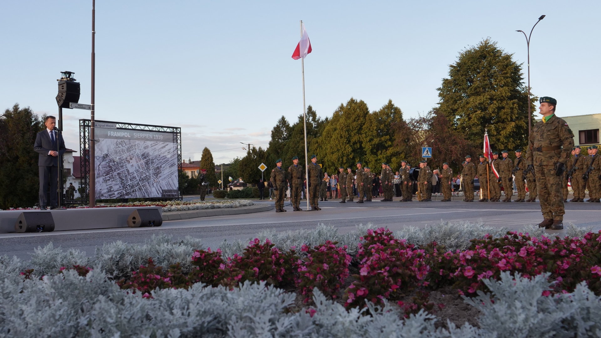 W uroczystości wzięli udział Marszałek Sejmu Elżbieta Witek - poseł na Sejm RP , wicepremier Minister Obrony Narodowej Mariusz Błaszczak oraz wicepremier Minister Aktywów Państwowych Jacek Sasin. Obecni byli posłowie i senatorowie, przedstawiciele władz wojewódzkich, Wojska Polskiego, władz samorządowych, instytucji i organizacji społecznych oraz mieszkańcy Frampola i okolic. Instytut Pamięci Narodowej Oddział w Lublinie reprezentowali dyrektor oddziału dr Robert Derewenda oraz naczelnik Oddziałowego Biura Upamiętniania Walk i Męczeństwa dr hab. Jacek Romanek.