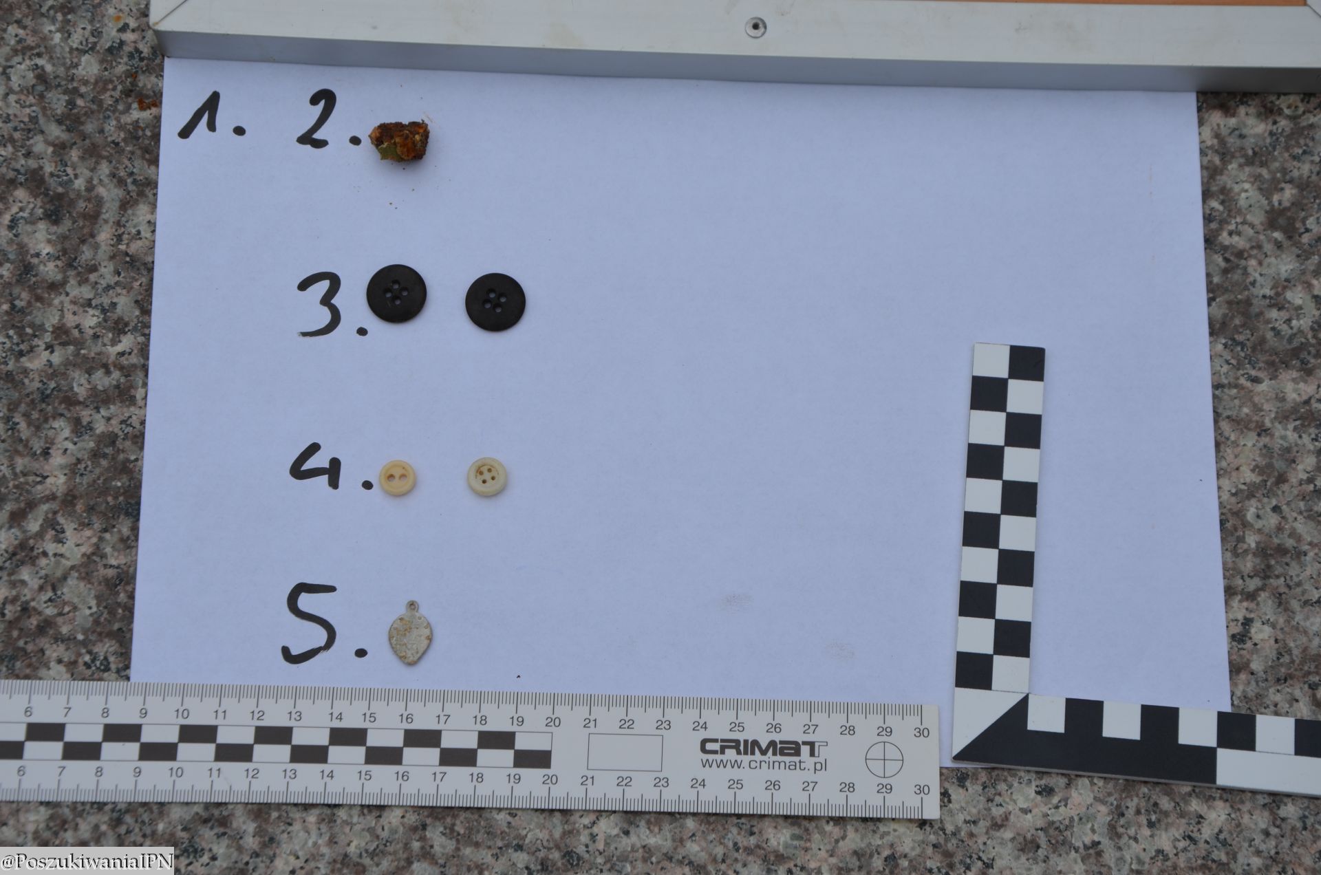 W trakcie wstępnych oględzin ustalono, że co najmniej dwie ofiary nosiły ślady po postrzałach w obrębie czaszki, charakterystyczne dla egzekucji tzw. metodą katyńską. Przy szczątkach ujawniono pojedyncze artefakty: plastikowe guziki oraz medaliki.