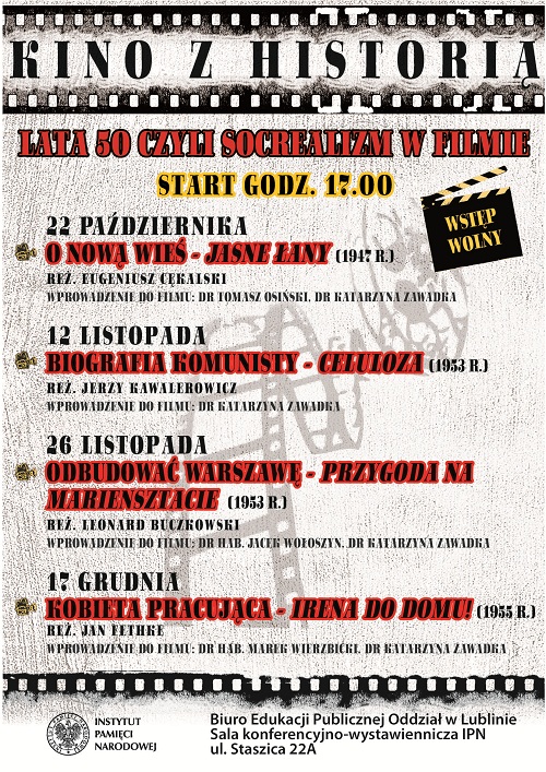 „Kino z historią" będzie kontynuowane w IPN do połowy grudnia br. Hasło przewodnie cyklu to „Lata 50., czyli socrealizm w filmie".
