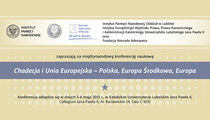 W dniach 5-6 maja 2015 r. odbyła się międzynarodowa konferencja naukowa „Chadecja i Unia Europejska – Polska, Europa Środkowa, Europa”. Miejsce obrad: Katolicki Uniwersytet Lubelski Jana Pawła II, Aleje Racławickie 14, sala C-1031.