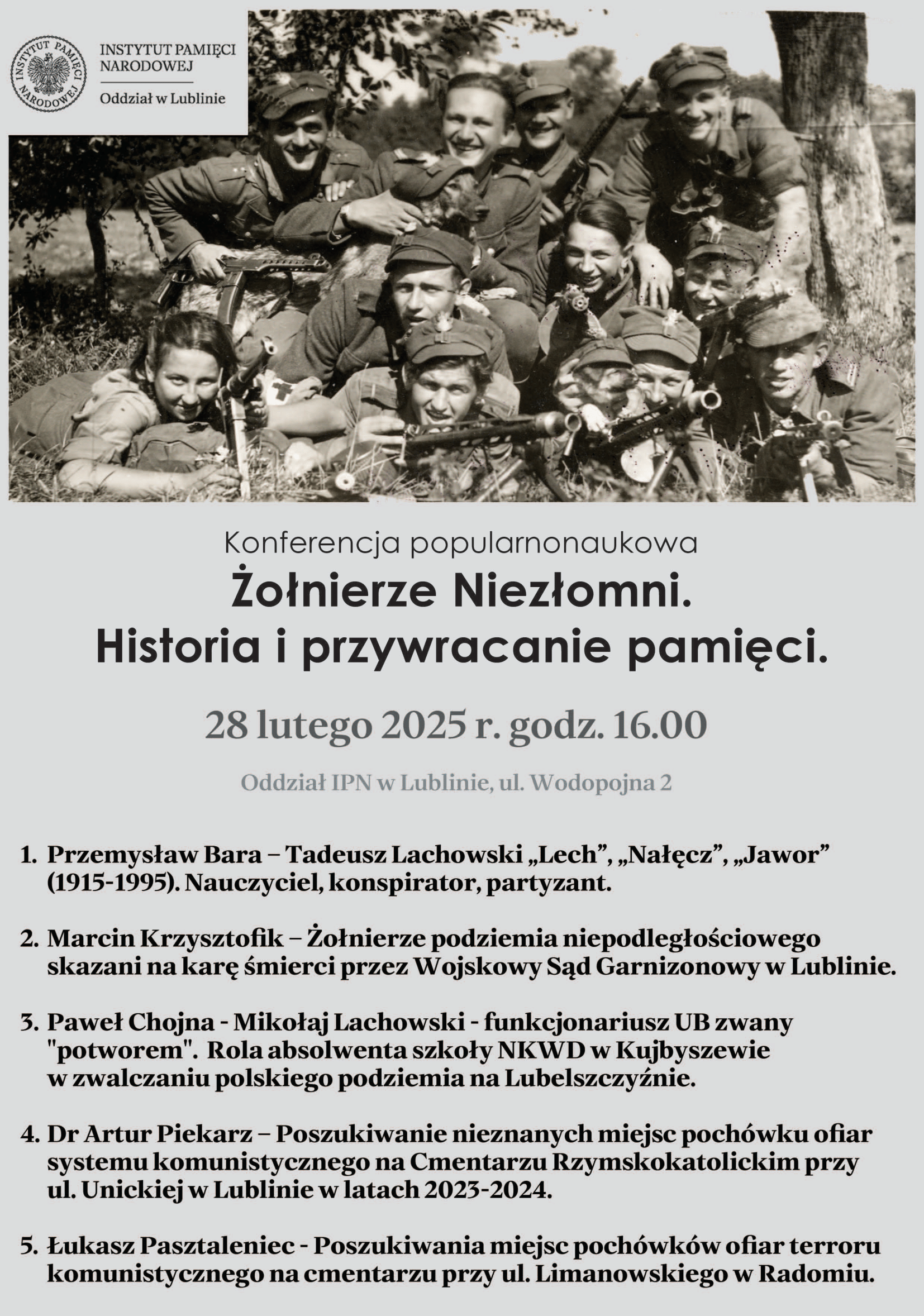 Konferencja popularnonaukowa „Żołnierze Niezłomni – historia i przywracanie pamięci” - Lublin, 28 lutego 2025 r.