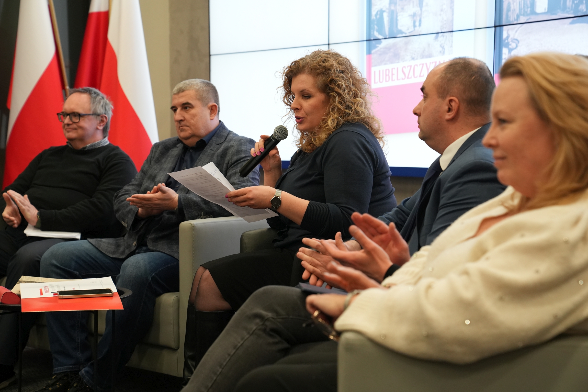 Spotkanie miało charakter rozmowy z wybranymi autorami publikacji. Poprowadziła ją dr hab. Ewa Rzeczkowska (IH KUL). O idei i okolicznościach powstania książki opowiadał jeden z redaktorów tomu dr Tomasz Osiński (LAW). Sytuację polityczną w regionie streścił dr hab. Jacek Wołoszyn. Kwestię przejmowania przez Resort Bezpieczeństwa Publicznego placówek więziennych po opuszczeniu ich przez Niemców scharakteryzował dr Artur Piekarz. Przedstawił także dane odnoście do liczby wyroków śmierci wykonanych w omawianym okresie. Rolę aparatu bezpieczeństwa w tworzeniu systemu komunistycznego w pierwszym okresie Polski lubelskiej ukazał dr Daniel Piekaruś. Ponadto opowiedział o tym kim byli pierwsi funkcjonariuszy aparatu represji. W dalszej kolejności dr Tomasz Osiński poruszył zagadnienia dotyczące gospodarki, w tym emocji jakie towarzyszyły ogłoszonej przez komunistów reformie rolnej. O charakterystycznych problemach dnia codziennego w tym okresie opowiedziała dr Justyna Dudek. Następnie dr Paweł Sokołowski zaznajomił słuchaczy z okolicznościami otwarcia w 1944 r. Katolickiego Uniwersytetu Lubelskiego i przybliżył genezę drugiej lubelskiej uczelni – Uniwersytetu Marii Curie-Skłodowskiej. Odpowiadał on również na pytanie o politykę PKWN wobec Kościoła katolickiego. W kwestii różnych problemów związanych z polską kulturą po lipcu 1944 r. zabrała głos dr Wioletta Woś. Dr Małgorzata Choma-Jusińska mówiła o miejscu 22 lipca (Narodowego Święta Odrodzenia Polski) wśród innych świąt państwowych w PRL. Na zakończenie rozmowy jeszcze raz głos zabrał dr hab. Jacek Wołoszyn, który zwrócił uwagę na trwałe cechy ustroju Polski Ludowej, które ukształtowały się jeszcze w 1944 r., a także dr Małgorzata Choma-Jusińska – nakreśliła jak władza komunistyczna przy pomocy święta 22 lipca mobilizowała i integrowała społeczeństwo.